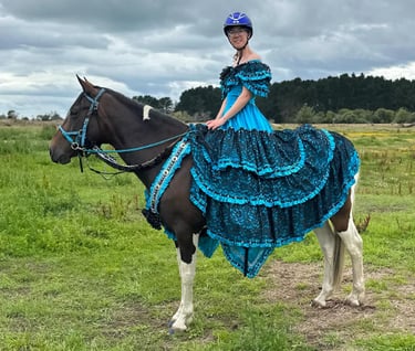 I can match your existing gear as closely as possible, compliment it, or contrast it to create a stunning outfit for you two. You can choose your colours, or send me photos, answer a few questions and leave it up to me to design you a custom colour combination. I just love it! And I can't wait to design something special for you.