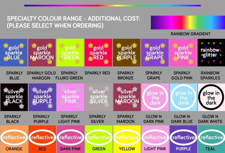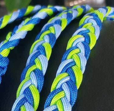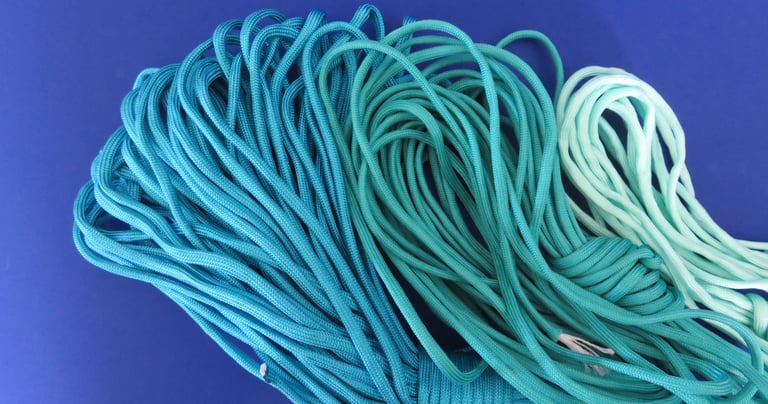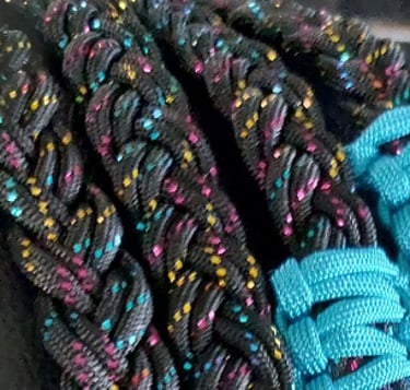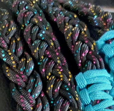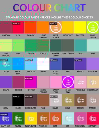 Ocean (left) is our most popular colour all around! It is Nylon so is shiny and eye catching.