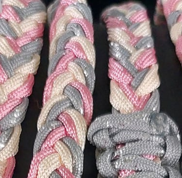 Stand out in low light riding home in twilight or darkness. This cord features dull grey squares, that when hit with light reflect back brightly, providing high visibility.